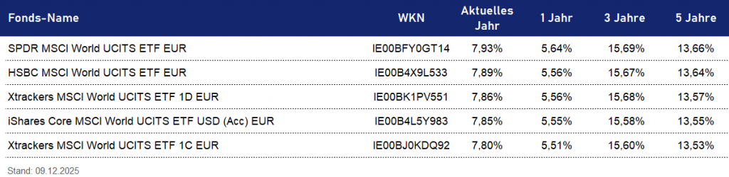 - Indexabhängigkeit: Obwohl alle ETFs einen bestimmten Index nachbilden, gibt es Unterschiede in der Struktur und Kosten der einzelnen ETFs, was die Performance beeinflussen kann.